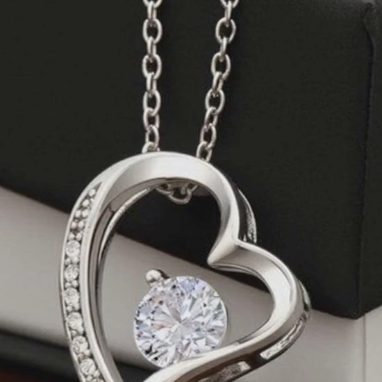 The dazzling Forever Love Necklace is sure to make her heart melt! This necklace features a stunning 6.5mm CZ crystal surrounded by a polished heart pendant embellished with smaller crystals to add extra sparkle and shine. Beautifully crafted with either a white gold or yellow gold finish, be sure to give her a classic gift she can enjoy everyday.